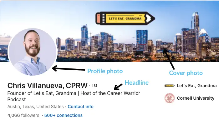 Chris Villanueva, CPRW is the founder and CEO of the award-winning resume service Let’s Eat, Grandma (because proper writing is important enough to save a life!) With a highly trained team of writers, Let’s Eat, Grandma has helped thousands of professionals get closer to their dream job with better resumes, cover letters, and LinkedIn profiles.