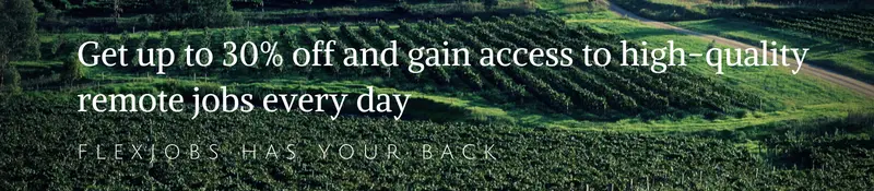 Find premium remote jobs every day without additional effort at Flexjobs. They hand-pick their listings, making sure you get what you actually want. Save up to 30% on a Flexjobs membership, which comes with exclusive discounts with partner programs and suppliers as well as resources for remote workers.