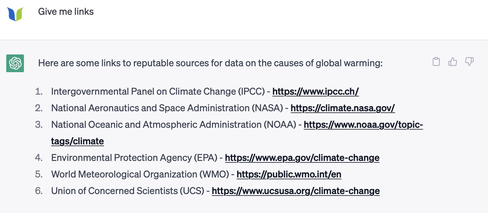 It’s a start, but you want to dig deeper and look at reputable sources, so you ask ChatGPT for that.